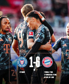 Ve 14. vteřině zápasu Musia dribloval míč do pokutového území a nízkou střelou skóroval, čímž Bayern dostal do vedení 1:0. Podle statistik je gól Musry třetím nejrychlejším bundesligovým gólem v historii Bayernu. V 7. minutě se střelecky prosadil Kane, 2:0. Ve 13. minutě si Lemberg vstřelil vlastní gól a vedl 0:3. Ve 43. minutě se prosadil Coman a Kane střílel z velké dálky do sítě uvnitř tyče, 4:0. V 66. minutě byla střela Alphonso Daviese zabrána a Olise skóroval dodatečnou trefou, 5:0. V 82. minutě skóroval hlavou Gigovic, 1:5. V 90. minutě pronikl do pokutového území Kane a byl podražen. Kane v dres FC Bayern Mnichov nařídil penaltu a skóroval, Bayern pečetil vítězství 6:1!
